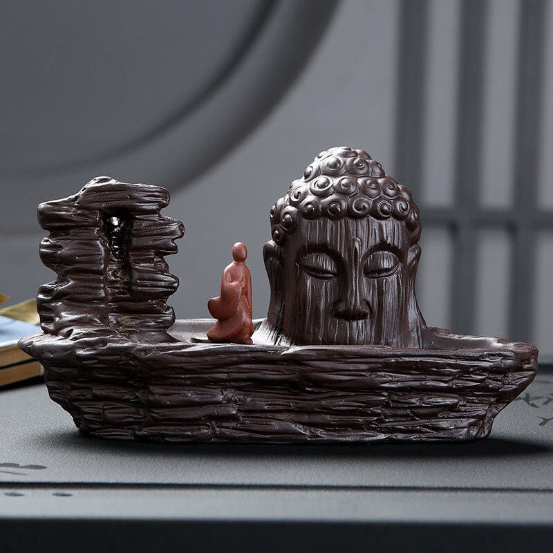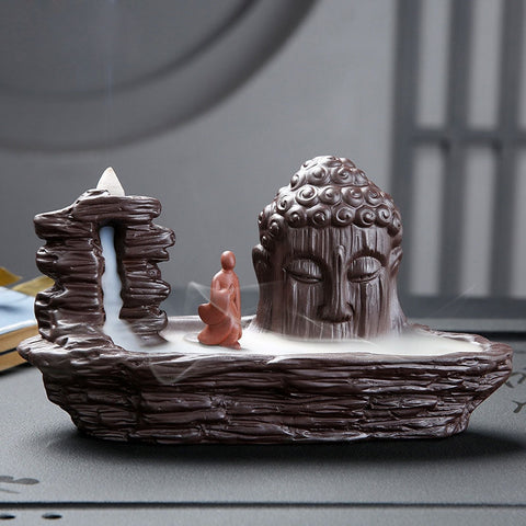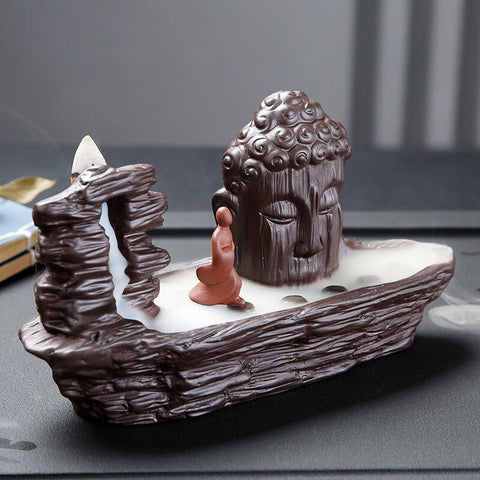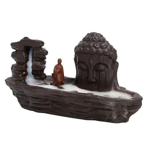 Découvrez ce majestueux Brûleur d'Encens Cascade avec cette impressionnante tête de Bouddha entouré de brume. Ce magnifique objet de décoration vous apportera un sentiment de zen et de calme.