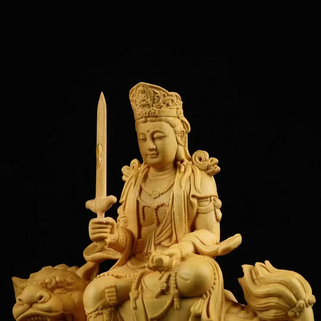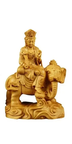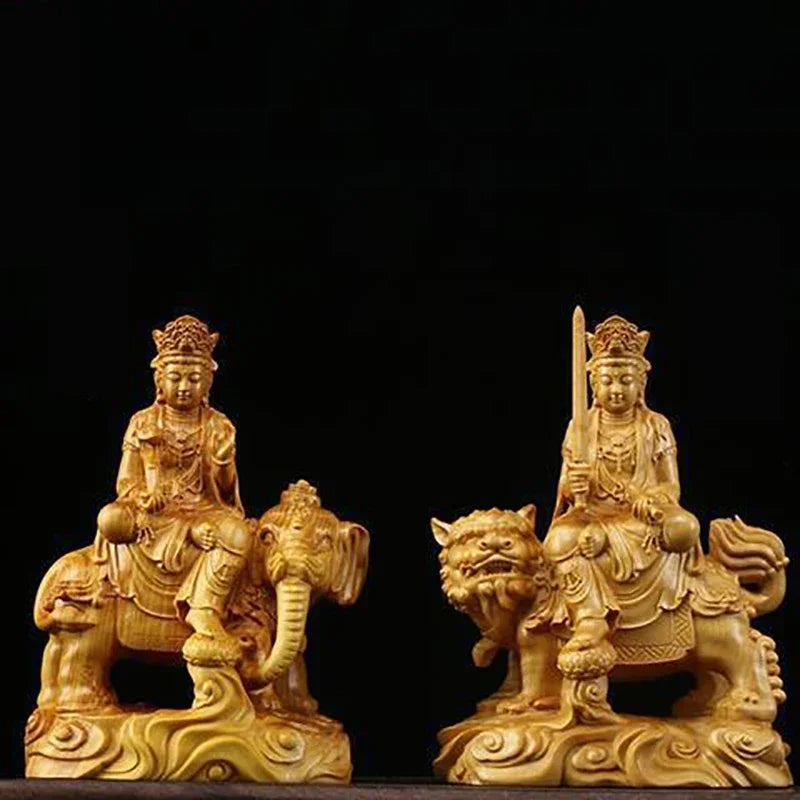 Boxwood Ornament Manjusri Samantabhadra Bodhisattva Statues Sculpture Decor Living Room Gift