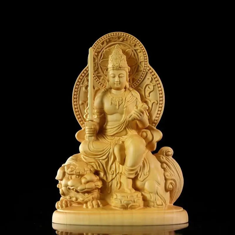 Cliff Cypress Wood Carving Manjusri Samantabhadra Bodhisattva Patron Saint Hand Carved Artifact Decoration Sculpture Modern Art