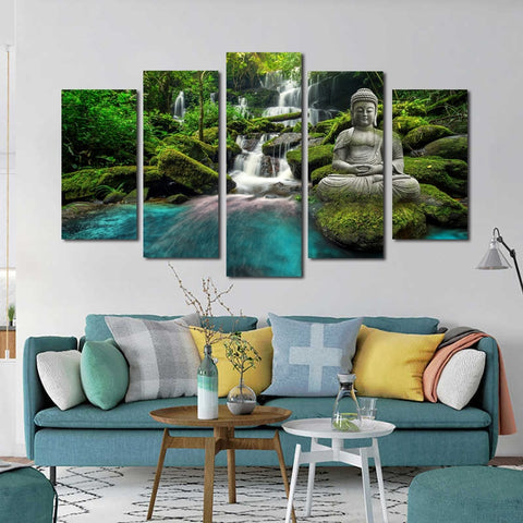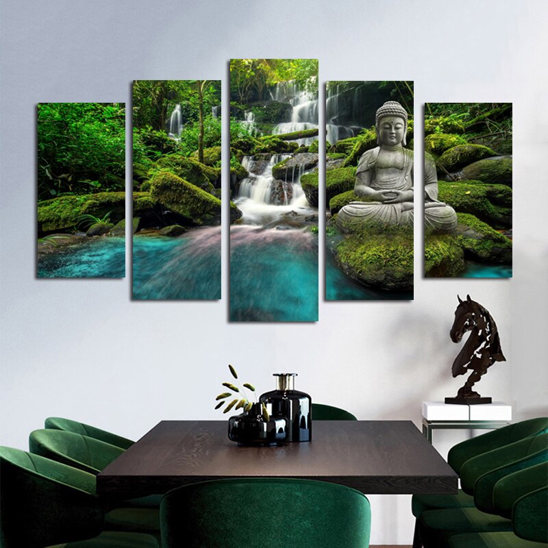 Ce Tableau Bouddha 5 parties est la déco parfaite à avoir chez-sois pour se sentir bien
